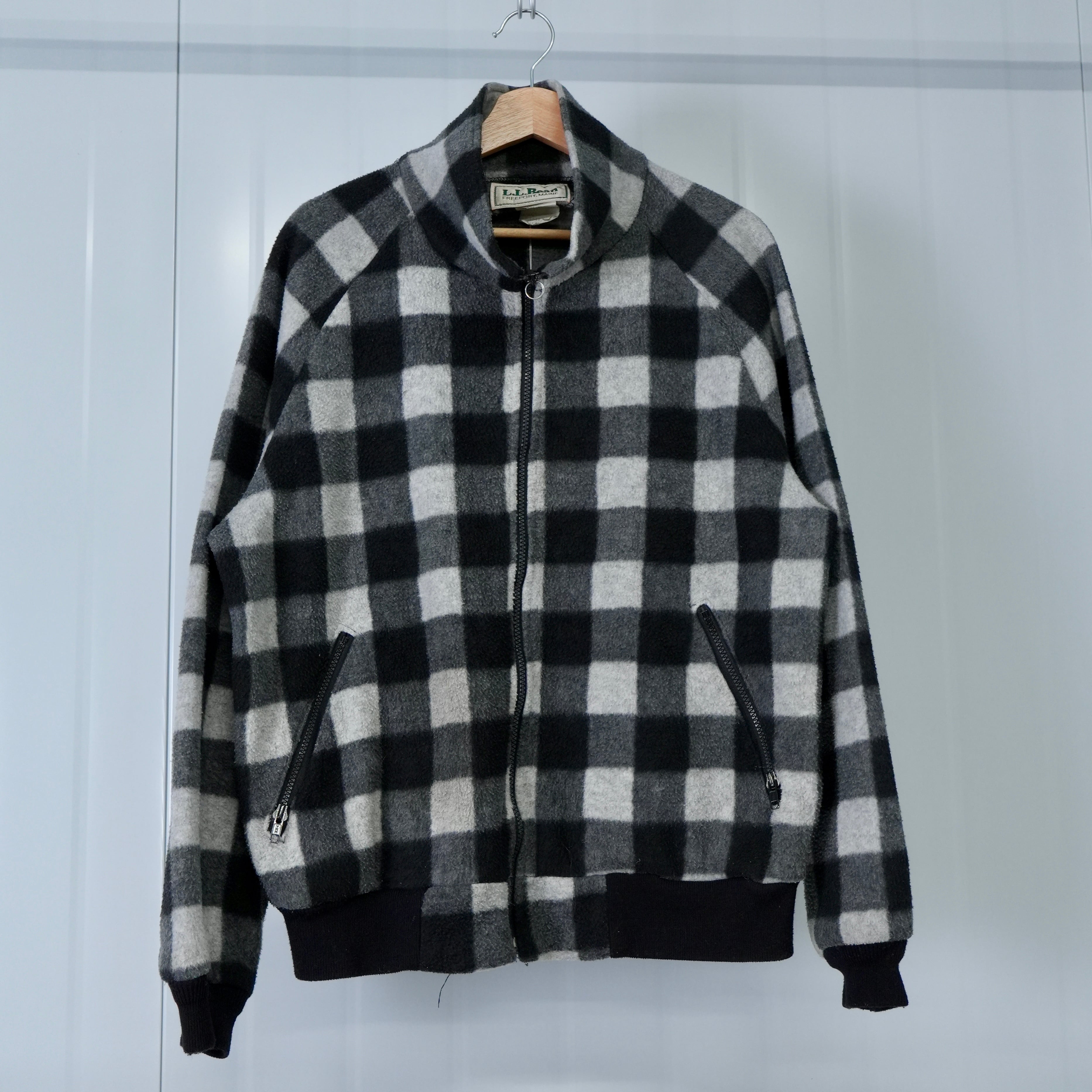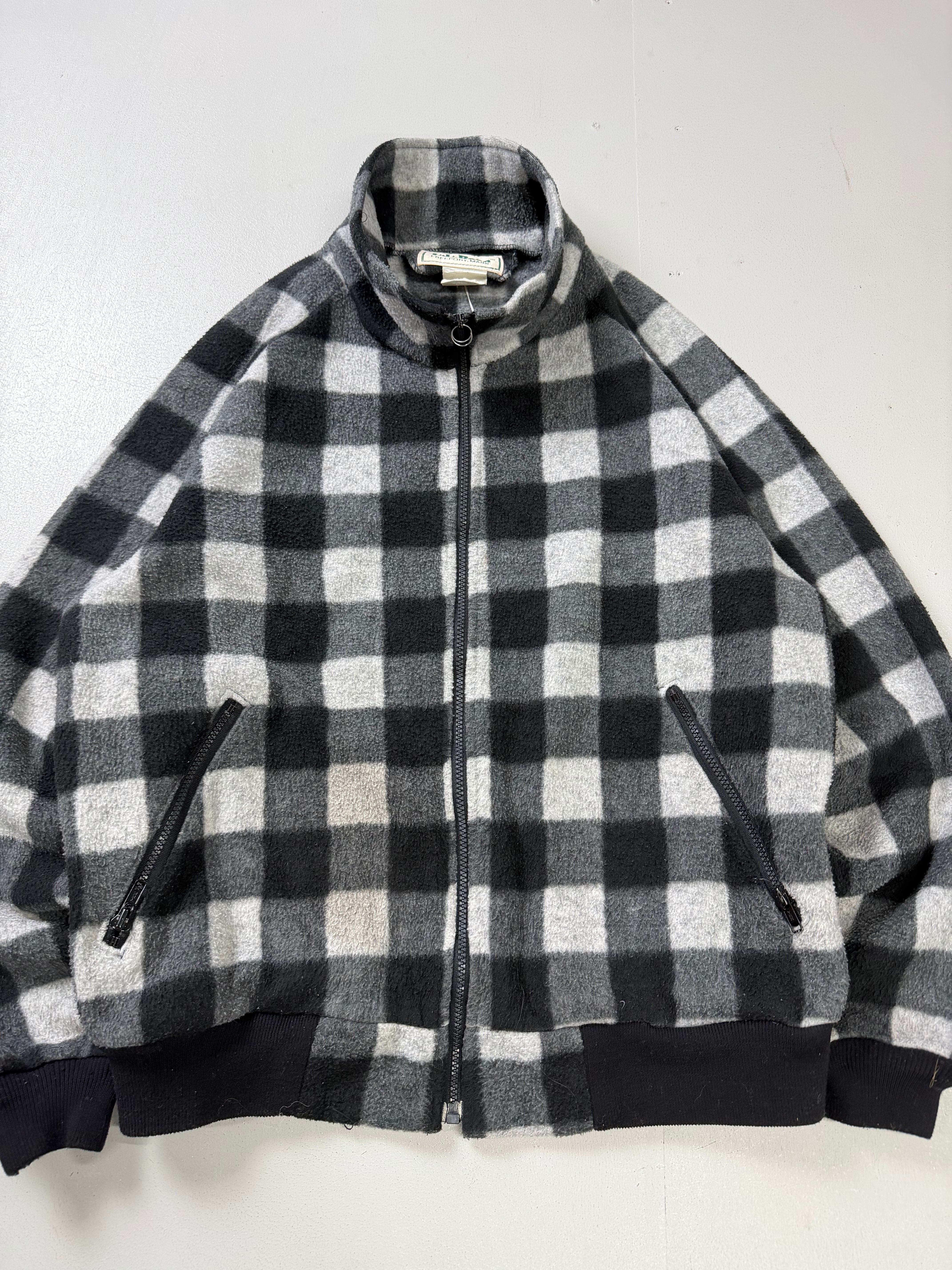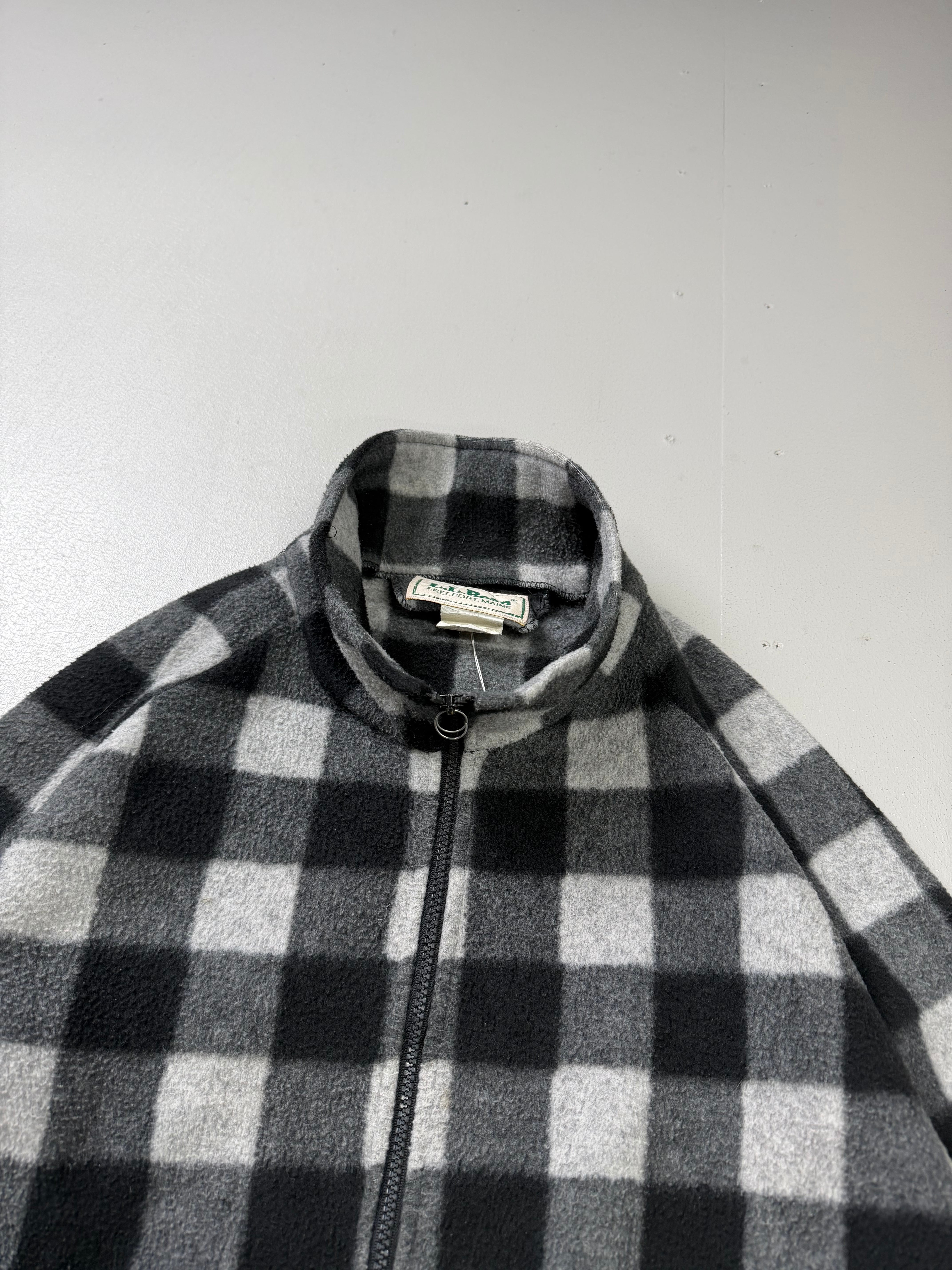 -L.L.Bean- ''80s Plaid Fleece Zip Jacket / Black × Grey