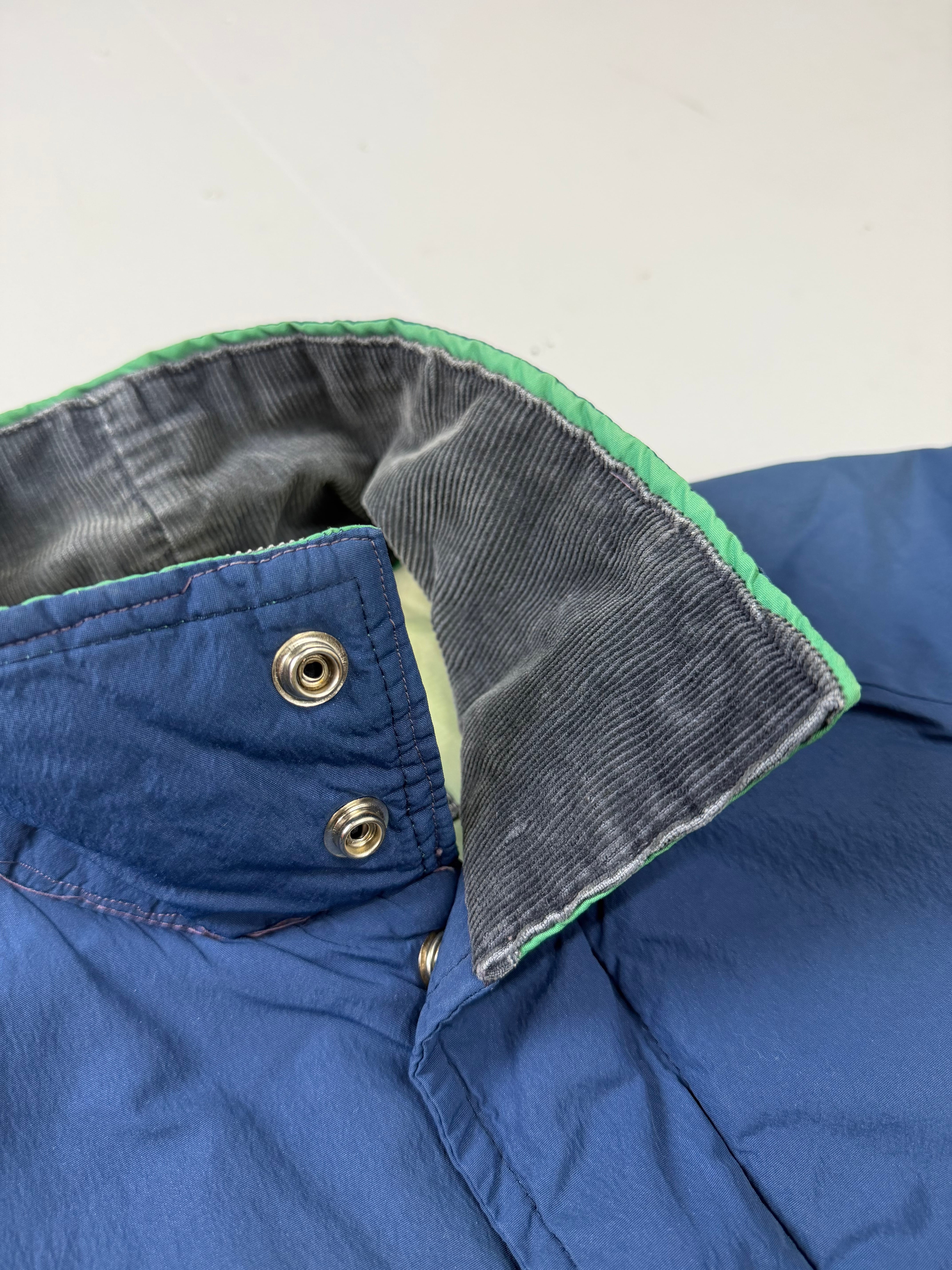 襟立て時コーデュロイ生地によりボタン使用不可